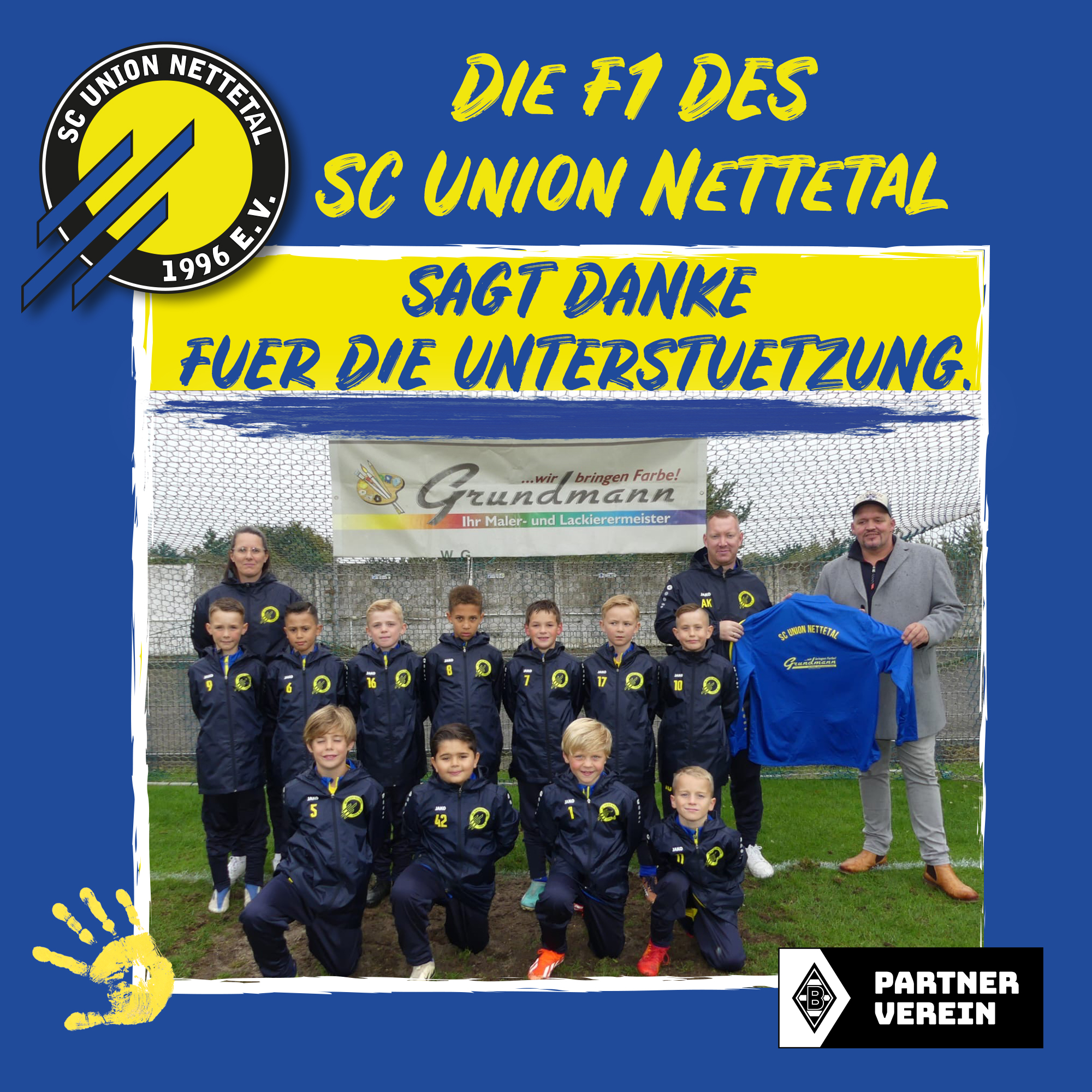 Vor dem Spiel gegen Tura Brüggen staunten die Kinder der F1 nicht schlecht. Firmeninhaber Markus Grundmann vom Malerfachbetrieb Grundmann aus Nettetal-Lobberich überraschte unsere Kinder der F1 mit seinem Besuch.