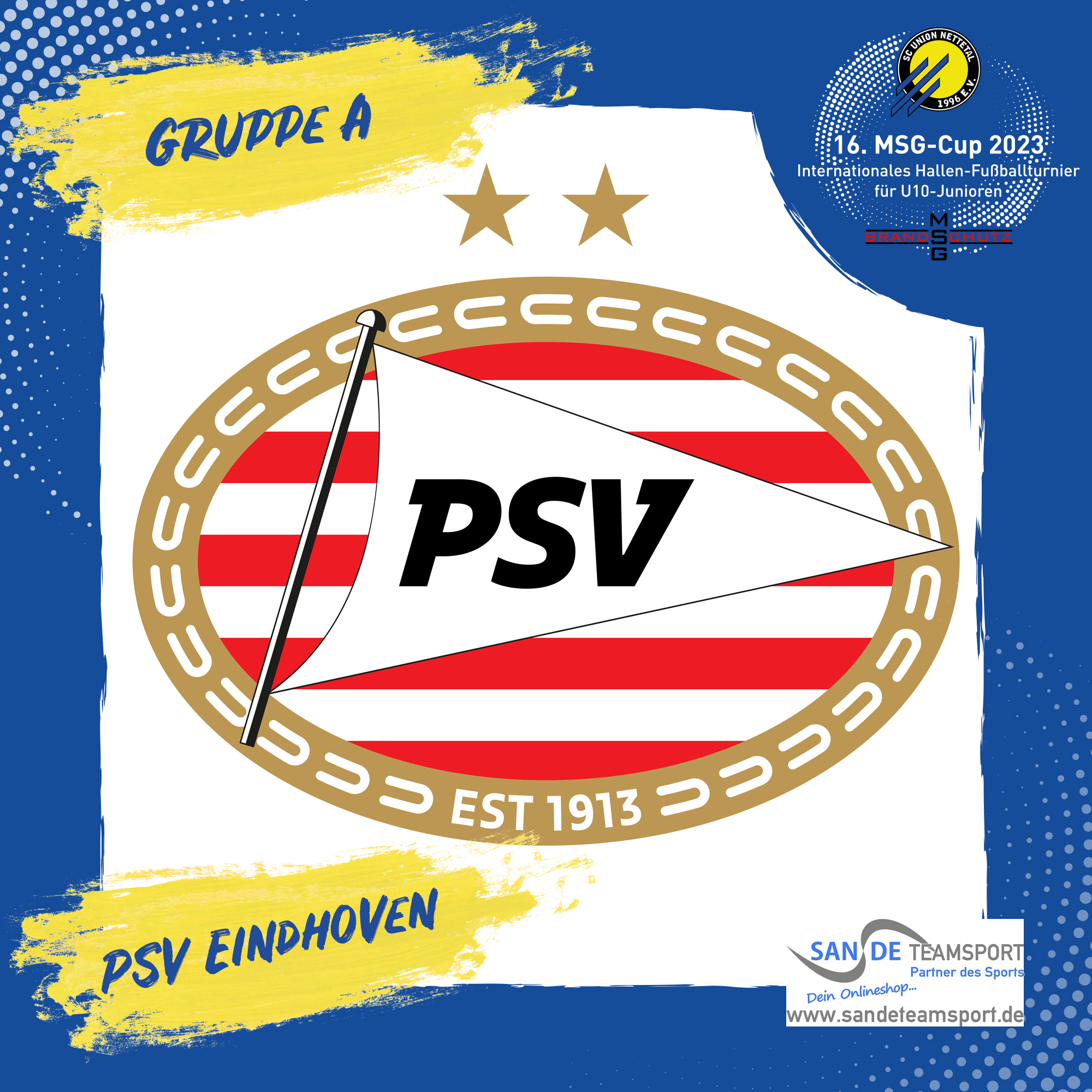 Mit dem PSV Eindhoven folgt ein weiterer Topverein aus den Niederlanden der Einladung zum MSG Cup und wird in der SanDe Teamsport Gruppe an den Start gehen.