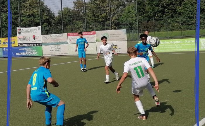In einem einseitigen Spiel nutzte unsere U12 zahlreiche Chancen nicht und geriet in der ersten Halbzeit durch den einzigen Schuss auf das eigene Tor sogar mit 0 zu 1 in Rückstand.Mehr
